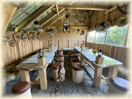 Ob Geburtstag, Sommerfest oder einfach ein schöner Abend mit Freunden: Unsere rustikale Grillhütte mit Außenküche bietet den idealen Rahmen für kleinere Feierlichkeiten bis ca. 30 Personen. Umgeben von Natur, mit Blick ins Grüne, lässt es sich hier ganz entspannt zusammenkommen – draußen, aber wettergeschützt.