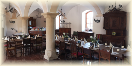 Unser unter Denkmalschutz stehendes Kreuzgewölbe mit seinem idyllischen Innenhof und dem Blick auf den Dittmannsdorfer Teich bietet eine ganz besondere Kulisse für Feiern, Begegnungen und Veranstaltungen mit Stil und Charakter.
