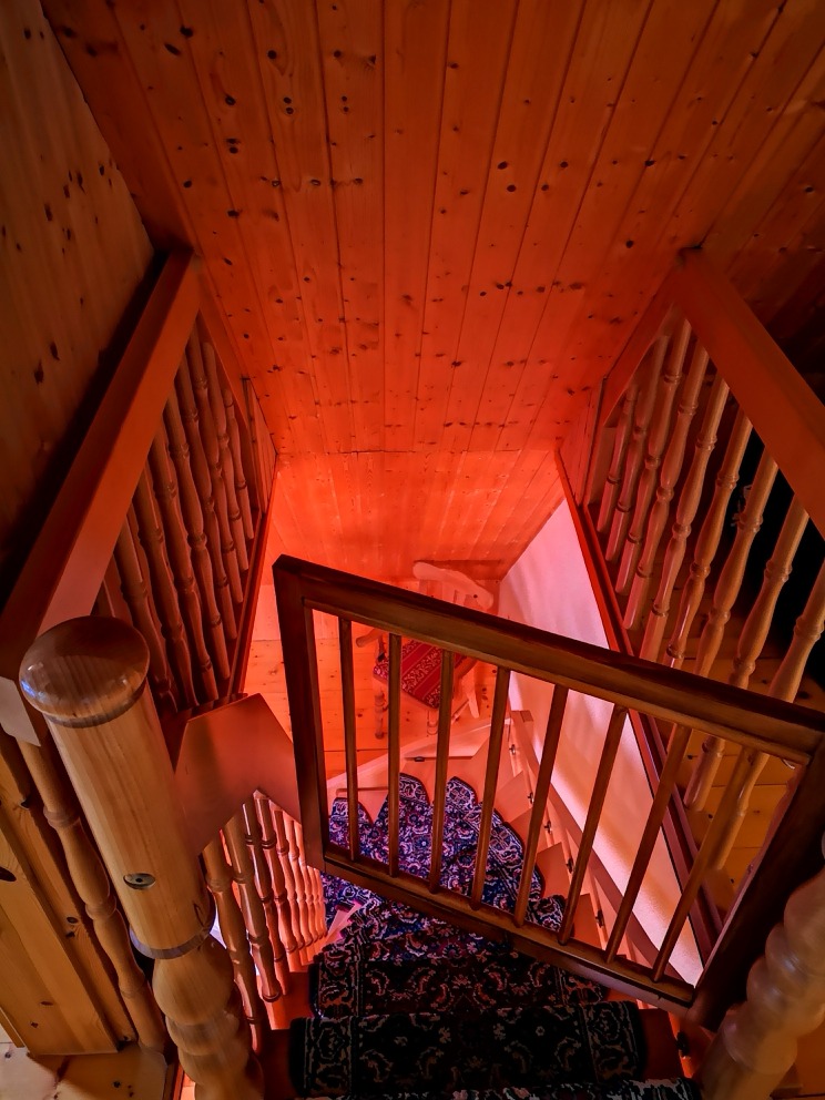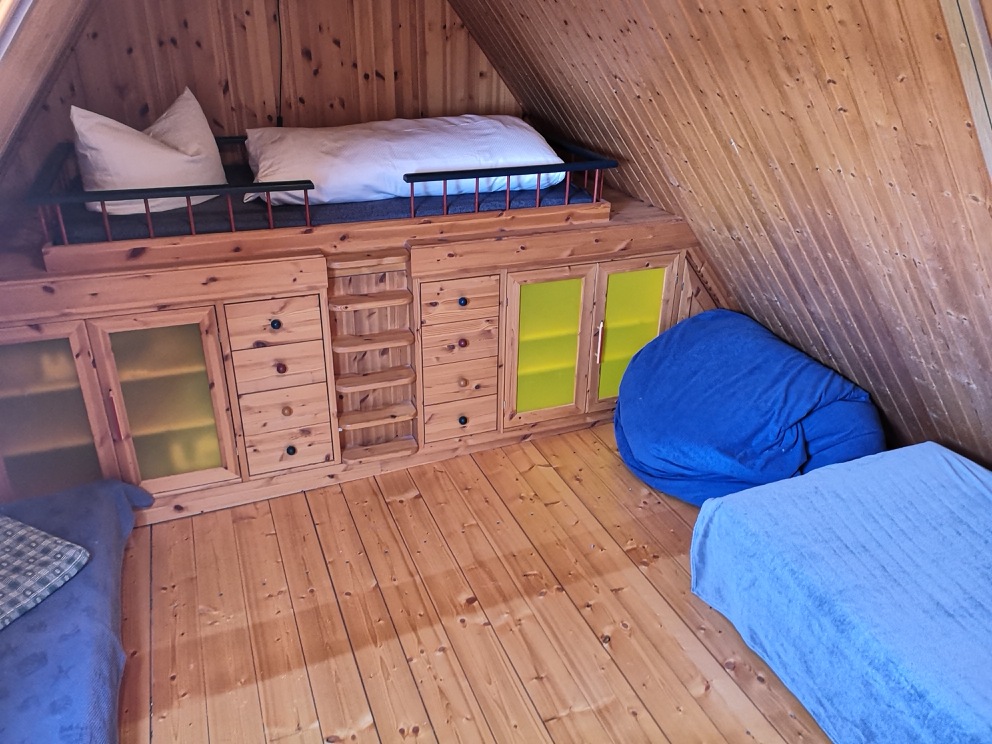 Aufbettung möglich. Der Treppenaufgang ist mit einer Sicherungstür für die Kinder ausgestattet.