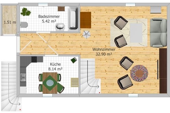 Waschmaschine, Herd), Bad (inklusive Fön), einem großen Wohnraum,