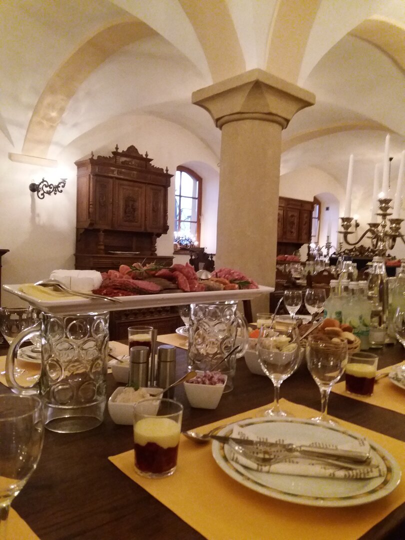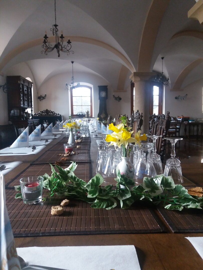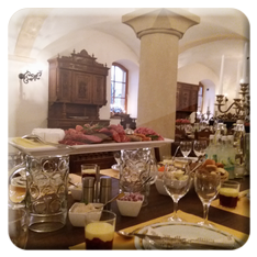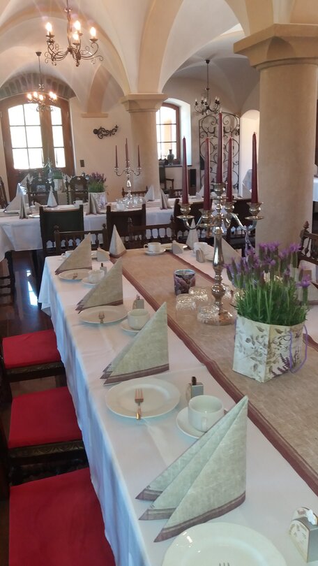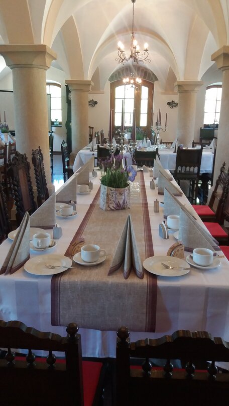 Das dreischiffige Kreuzgewölbe im Erdgeschoss steht für Ihre